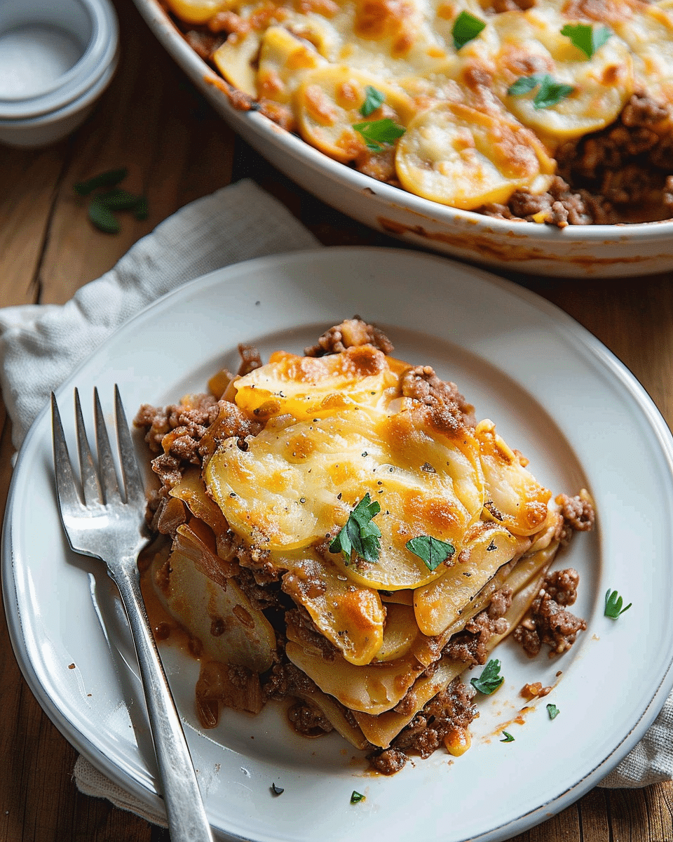 A cozy, budget-friendly dinner made with ground beef, potatoes, and creamy mushroom soup—this easy hobo casserole is comfort food at its best!