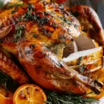 This easy juicy roast turkey recipe is infused with garlic, herbs, and butter—crispy on the outside, tender on the inside, and perfect for holiday dinners.