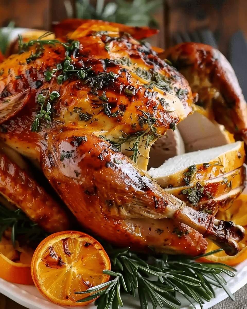 I let the turkey rest, loosely tented with foil, for at least 20–30 minutes before carving. This locks in the juices for perfectly tender slices.