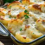 5. Bake I cover the dish tightly with foil and bake for 40 minutes. Then I remove the foil and bake for another 30–45 minutes, until the potatoes are fork-tender and the top is golden brown. If the top starts browning too fast, I loosely cover it again with foil.