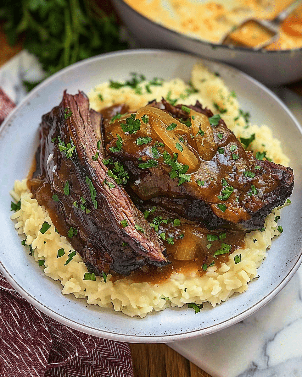 Tender, fall-apart beef short ribs simmered low and slow in red wine, garlic, and herbs—classic French comfort food at its finest.
