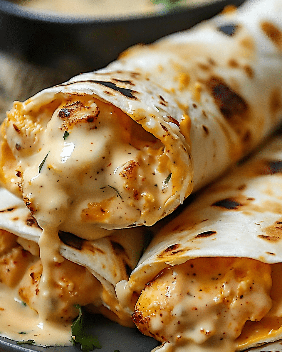 These cheesy garlic chicken wraps are loaded with flavor, melty cheese, and creamy filling—all wrapped in golden toasted tortillas in just 20 minutes.