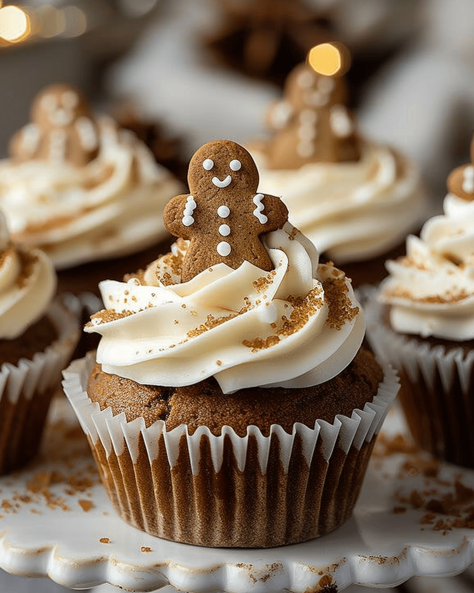 I love how these cupcakes combine all the traditional flavors of gingerbread in a soft, tender cake format. They’re easy to make, beautiful to present, and incredibly satisfying to eat. The molasses gives them a deep, caramel-like richness, while the frosting adds a cool, creamy contrast. They stay moist for days and always feel like a celebration—especially when I top them with mini gingerbread men or a sprinkle of cinnamon.