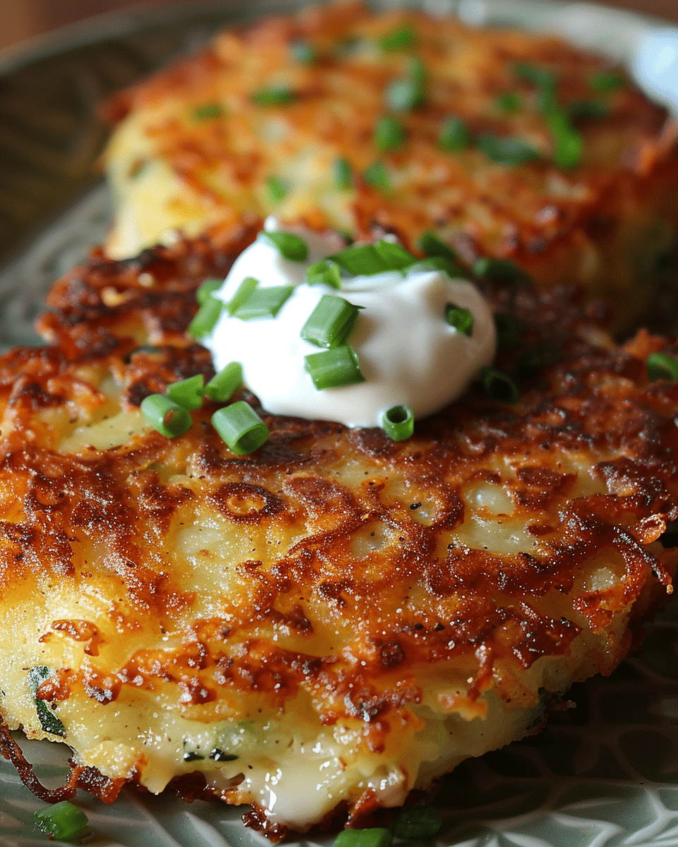 These crispy potato cakes are loaded with melty cheese and roasted green chile, then pan-fried to golden perfection. Serve with a cool green chile sour cream dip for the ultimate side dish.