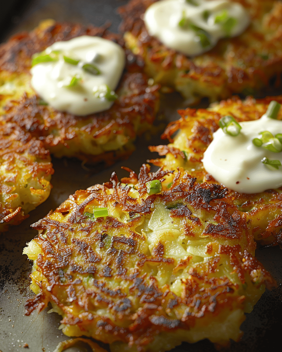 These crispy potato cakes are loaded with melty cheese and roasted green chile, then pan-fried to golden perfection. Serve with a cool green chile sour cream dip for the ultimate side dish.