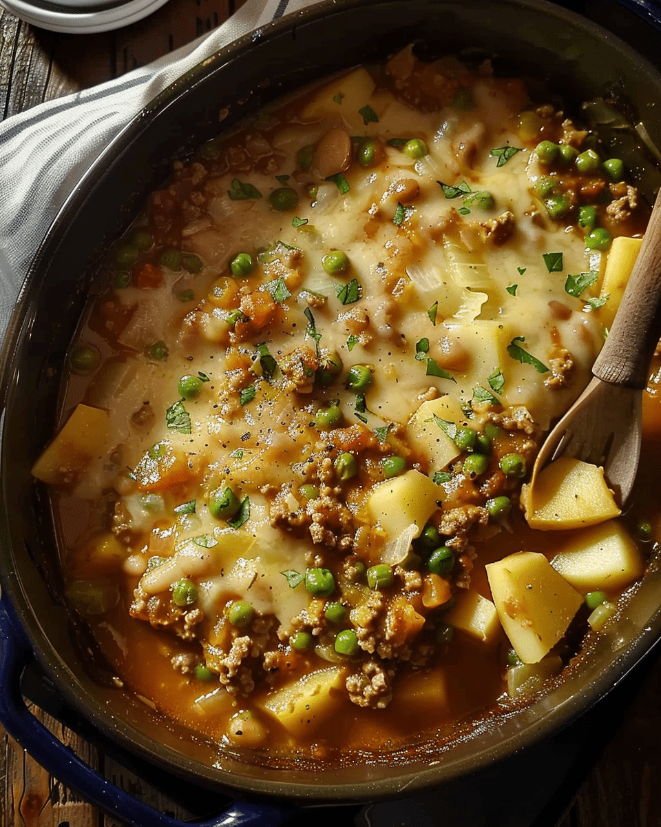 I toss in the diced potatoes and continue cooking for another 20–25 minutes until the potatoes are soft and fork-tender.