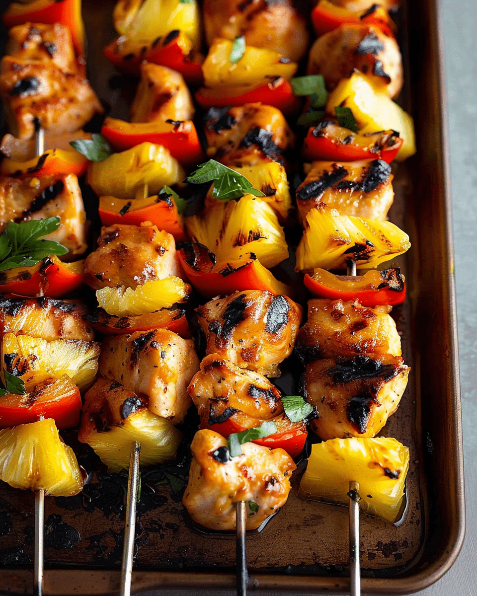 These juicy grilled chicken pineapple kabobs are loaded with sweet pineapple, tender chicken, and colorful veggies—ready in just 30 minutes!