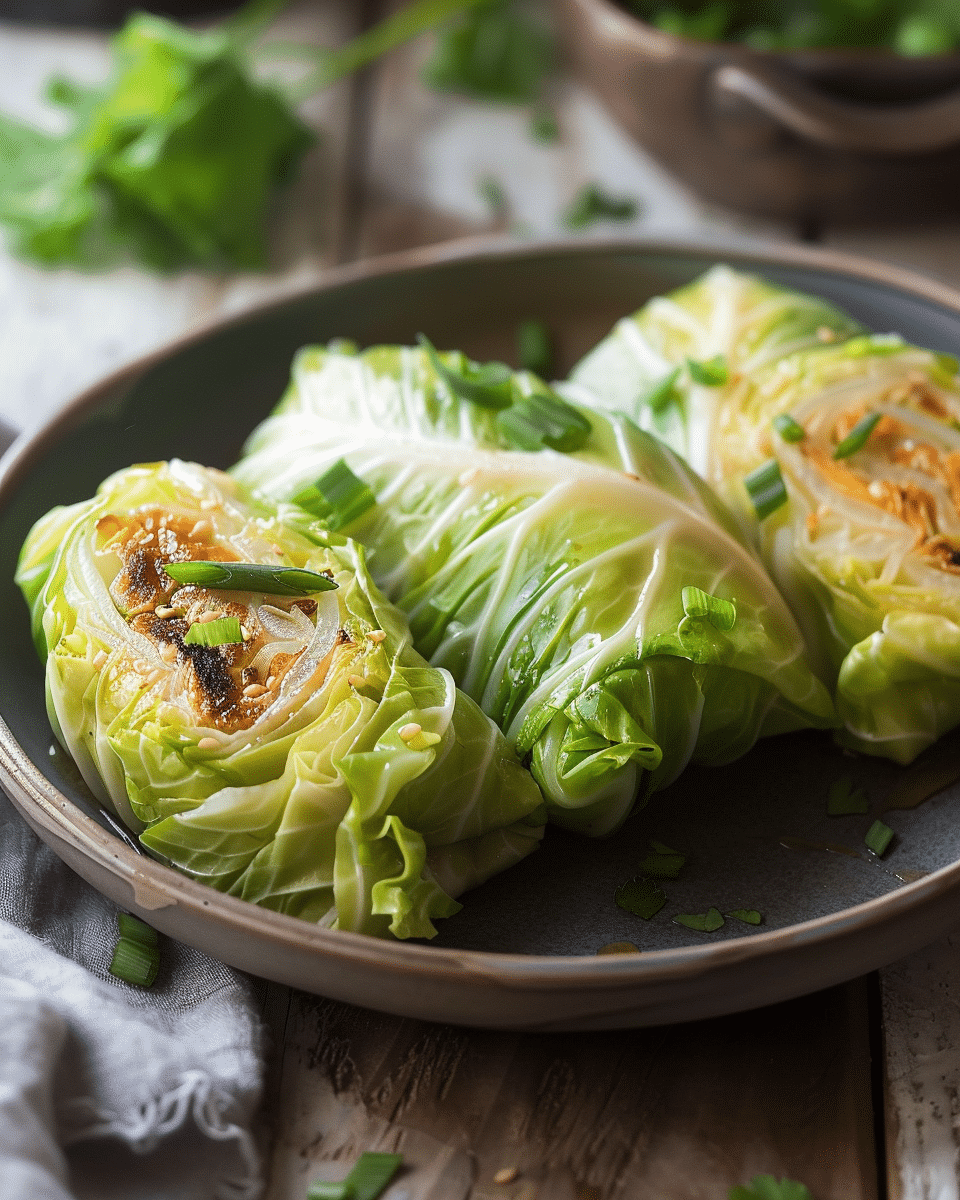 The best healthy steamed cabbage rolls made with juicy filling and tender cabbage leaves. A delicious Chinese-style dish that’s light, comforting, and full of flavor.