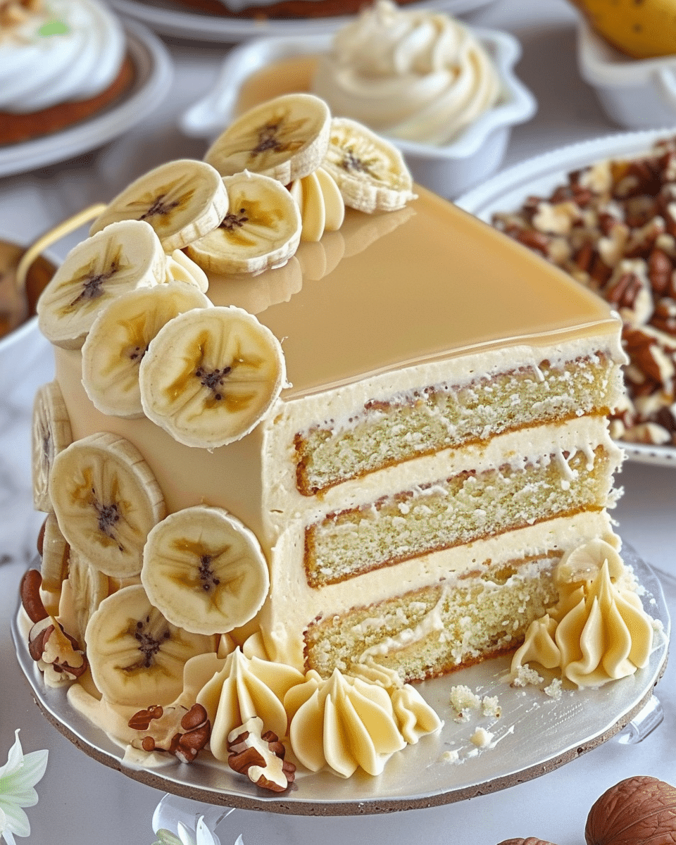 I love how this cake plays with texture—soft and moist banana cake, creamy custard, and crunchy nuts in every bite. It feels elegant yet nostalgic, and it’s just sweet enough without going overboard. It’s also incredibly versatile—I’ve served it for birthdays, casual dinners, and even brunch.