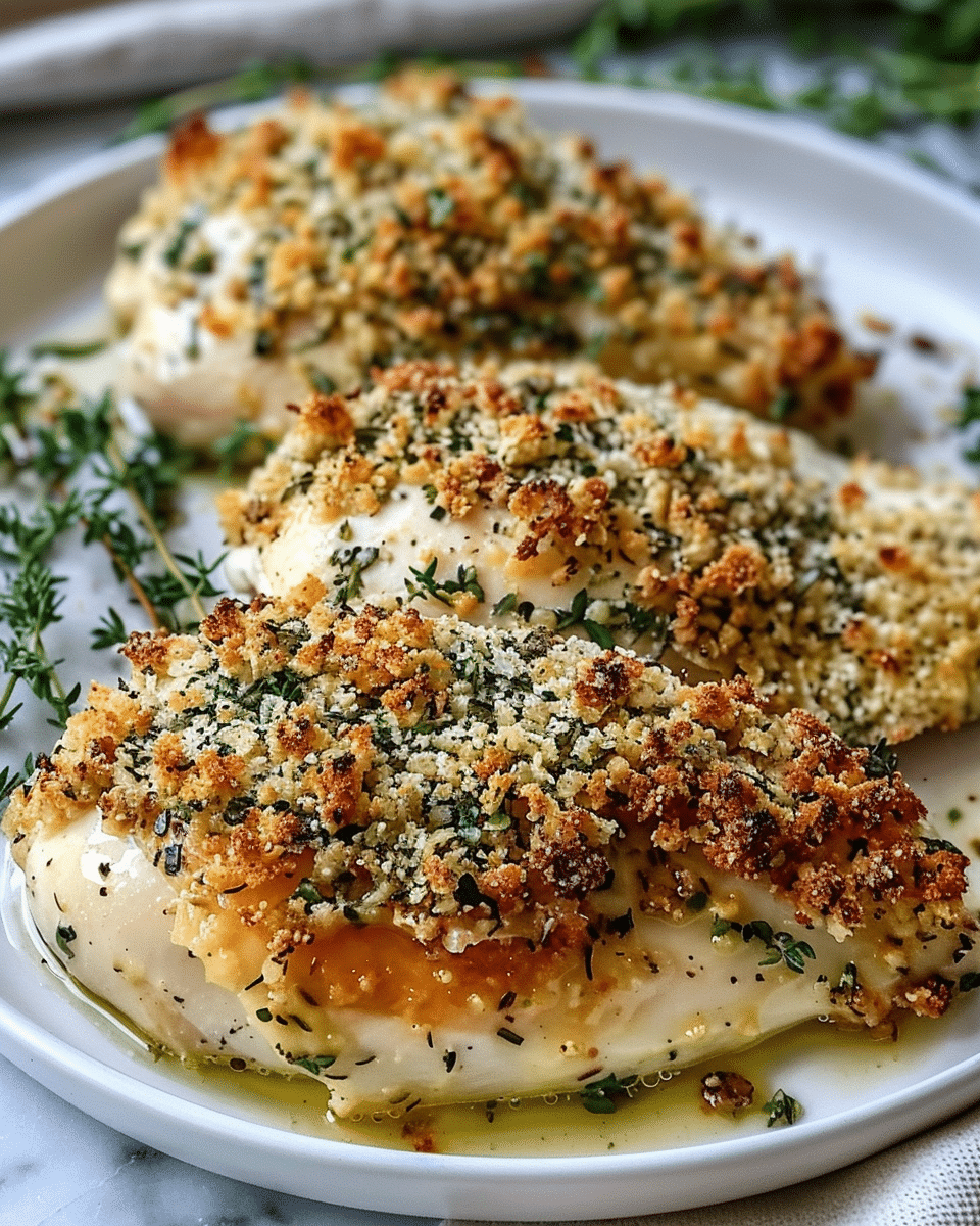 Juicy baked chicken breasts stuffed with creamy Boursin cheese and coated in a crispy herb-Parmesan crust. This easy oven baked dinner is perfect for a cozy family meal and ready in just 35 minutes.
