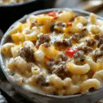 High-Protein Creamy Philly Cheesesteak Mac & Cheese Bliss is a rich, cheesy comfort food packed with lean ground beef, bell peppers, and a creamy protein loaded sauce. This easy thirty minute dinner recipe is perfect for meal prep and satisfying high protein cravings.