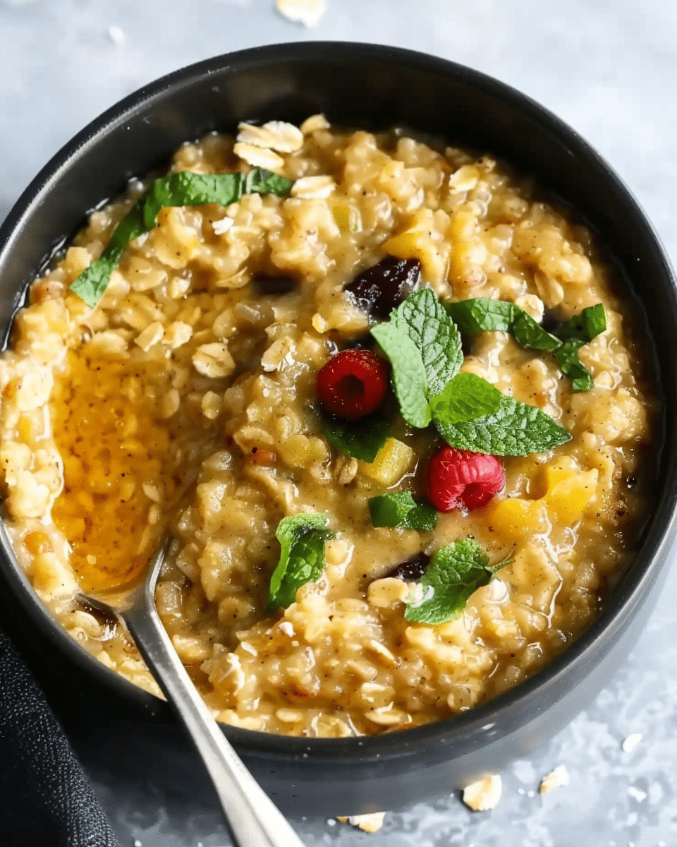 A nutrient-packed savory oatmeal loaded with lentils, kale, and spices—rich in fiber, antioxidants, and plant-based protein for a complete meal.