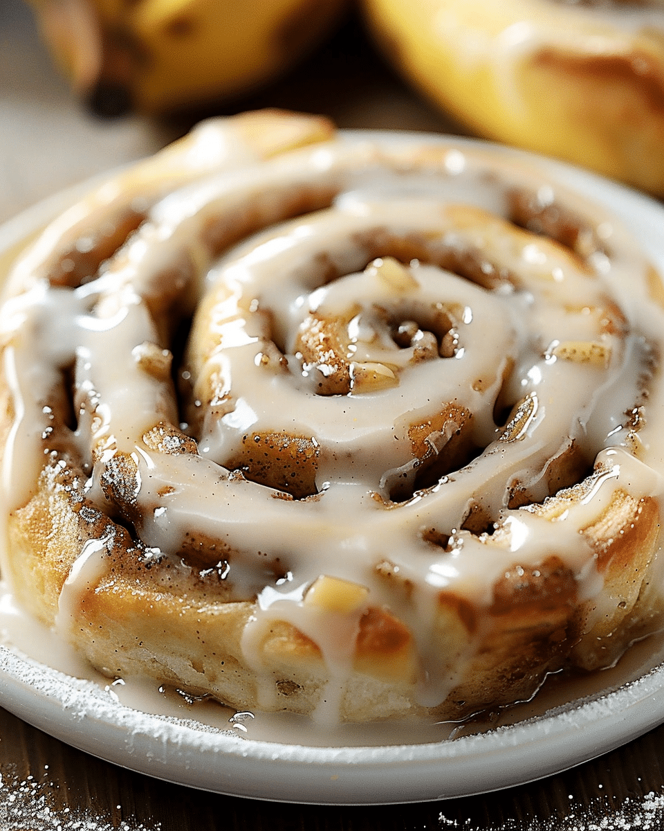 These soft and fluffy banana cinnamon rolls are filled with brown sugar and cinnamon, then topped with rich cream cheese icing. A sweet twist on a classic breakfast favorite!