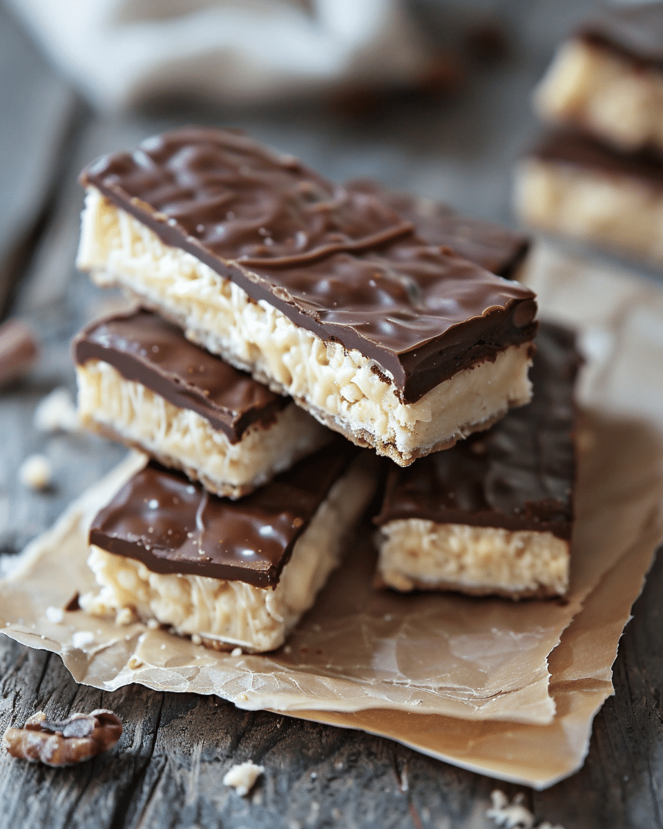 I sometimes use dark chocolate instead of milk chocolate for a richer flavor. I also like adding a few drops of vanilla or almond extract to the coconut mixture for extra depth.