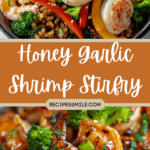 This quick and flavorful honey garlic shrimp stirfry features tender shrimp, crisp veggies, and a sticky sweet garlic sauce. A perfect 25-minute weeknight meal!