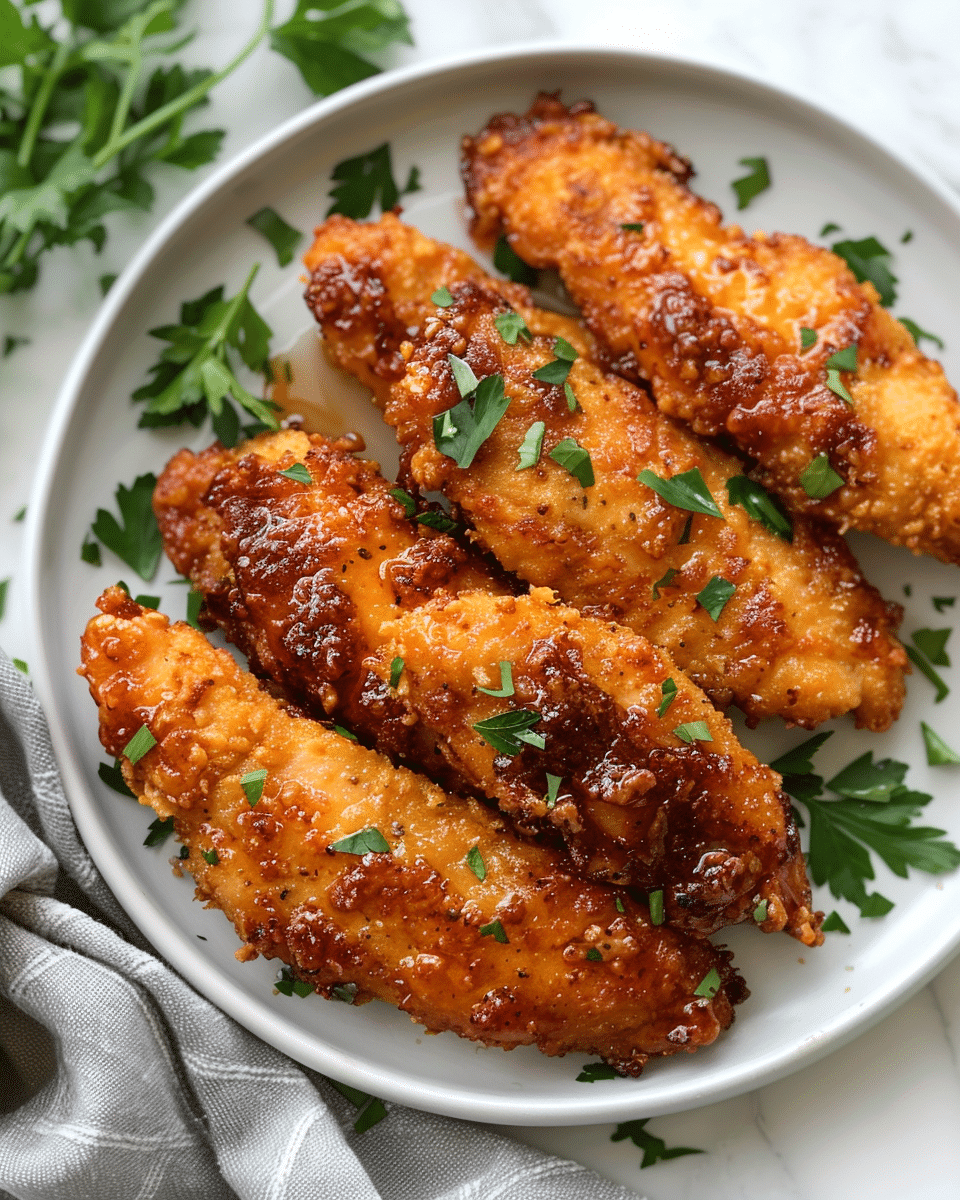 These crispy honey mustard chicken tenders are golden, juicy, and full of flavor! Made with a creamy yogurt marinade and crunchy cornflake coating—perfect from air fryer or oven.