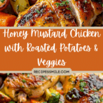 This honey mustard chicken with roasted potatoes and veggies is one of those foolproof recipes that delivers every time. It’s comforting, balanced, and full of flavor, yet simple enough to make on a busy night. The glaze caramelizes beautifully in the oven, and I love how every bite has a little bit of sweet, savory, and tangy magic.