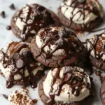 Hot fudge sundae cookies are a fun dessert that combines the look and flavor of a classic sundae with the ease of homemade cookies. I enjoy how the soft chocolate base, creamy frosting, warm fudge, and colorful toppings come together to create a playful and delicious treat that is perfect for sharing.