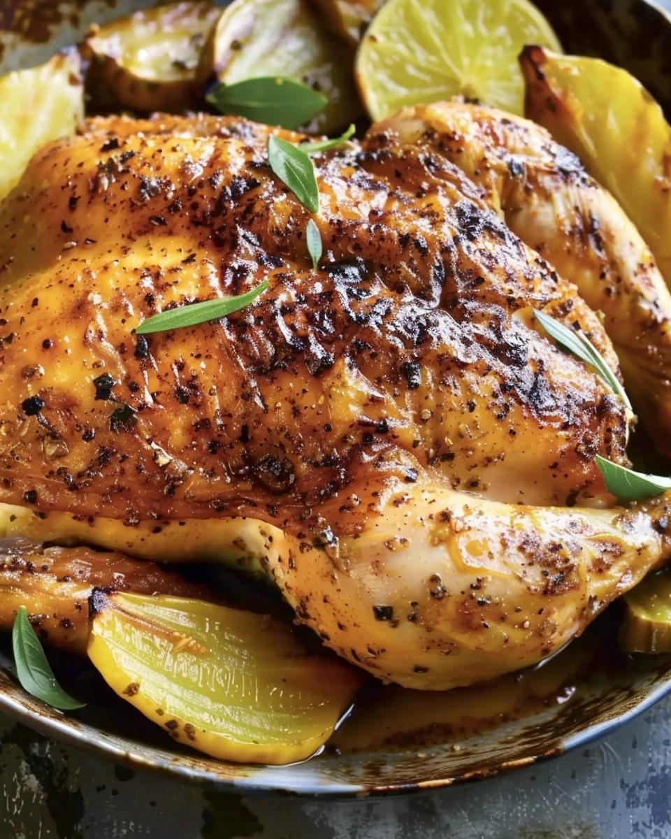Rest chicken for 5 minutes before slicing. Serve hot, garnished with herbs or lemon wedges if desired.