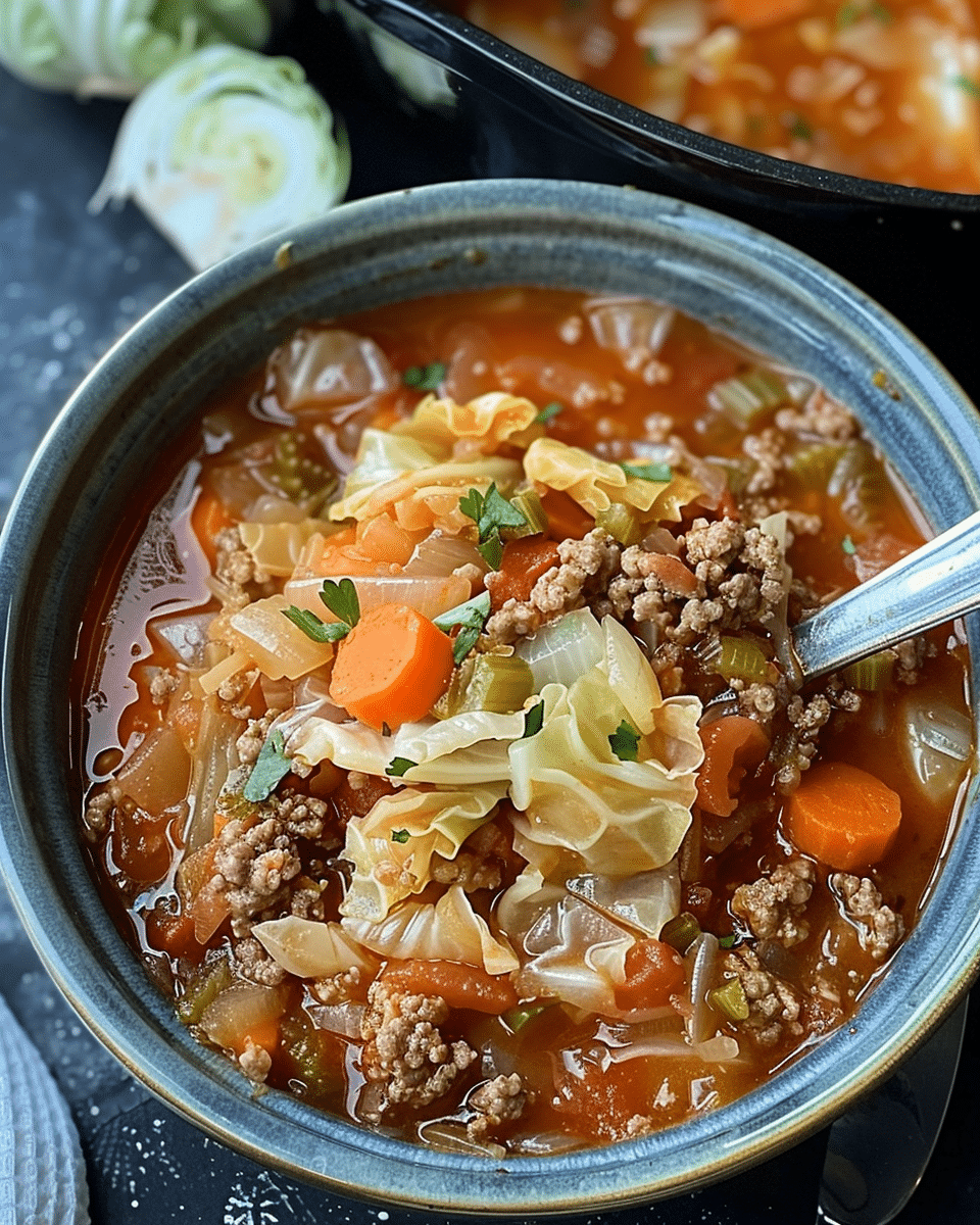 I love how this soup delivers bold, savory flavor with minimal effort. It’s filling, budget-friendly, and perfect for keeping me full without the carbs. The beef adds richness, the cabbage adds bulk without heaviness, and the blend of herbs like thyme, paprika, and oregano creates a broth that tastes like it simmered for hours. It’s naturally gluten-free, keto-approved, and easy to double for freezing. Plus, the whole thing comes together in about 40 minutes.