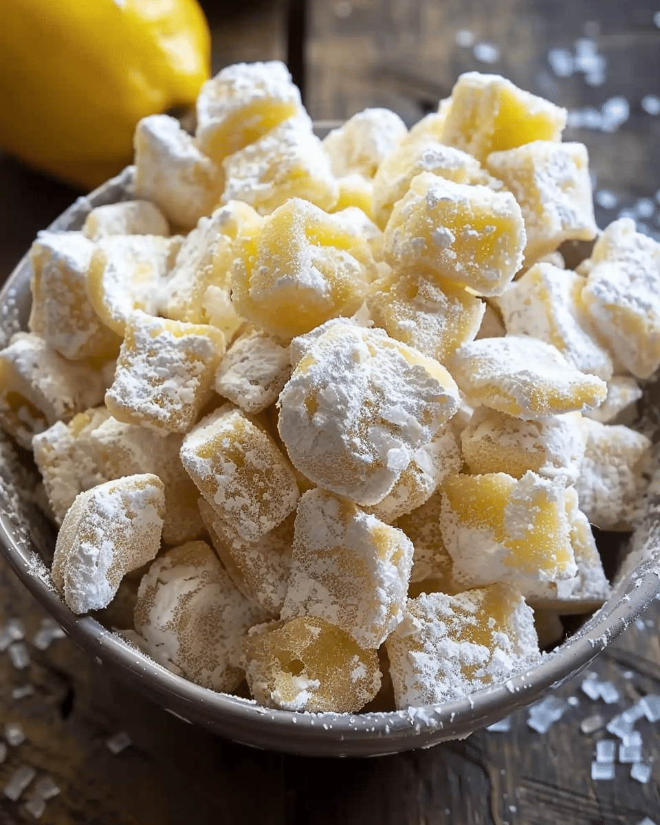 This zesty no-bake snack mixes crispy cereal with lemony white chocolate and powdered sugar for a bright, sweet treat. Perfect for summer parties, showers, or a citrusy snack fix!