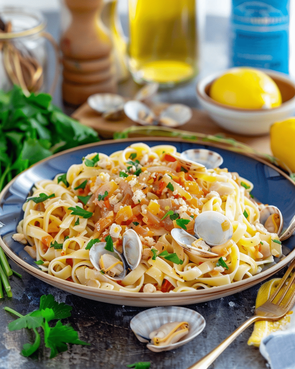 This quick and elegant pasta dish combines garlic, olive oil, lemon, and tender clams tossed with linguine for a classic Italian seafood favorite.