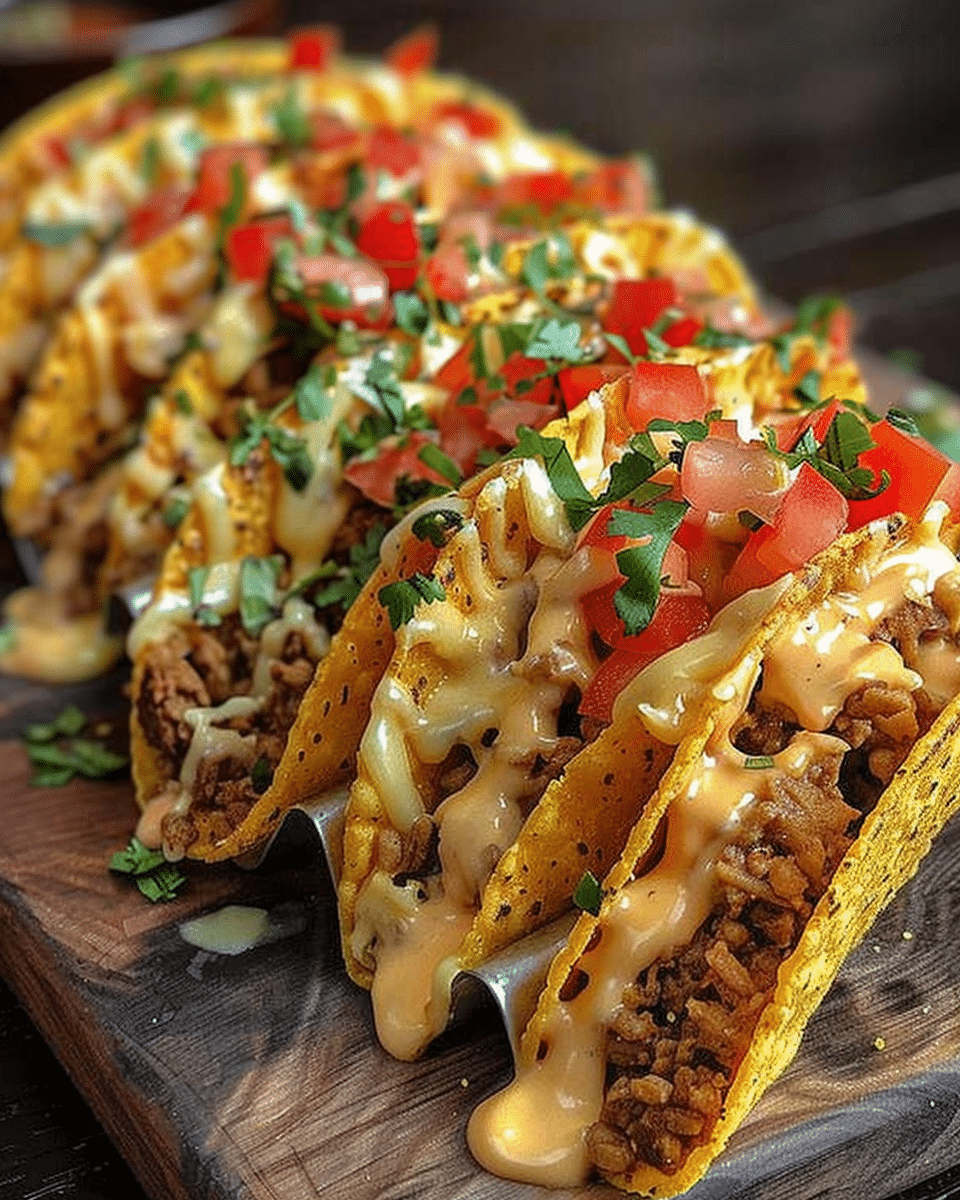 I store the seasoned beef and cheese sauce separately in airtight containers in the fridge for up to 3 days. To reheat, I warm the beef in a skillet and gently reheat the cheese sauce on the stove, stirring often. I always assemble the tacos fresh so the shells stay crisp.