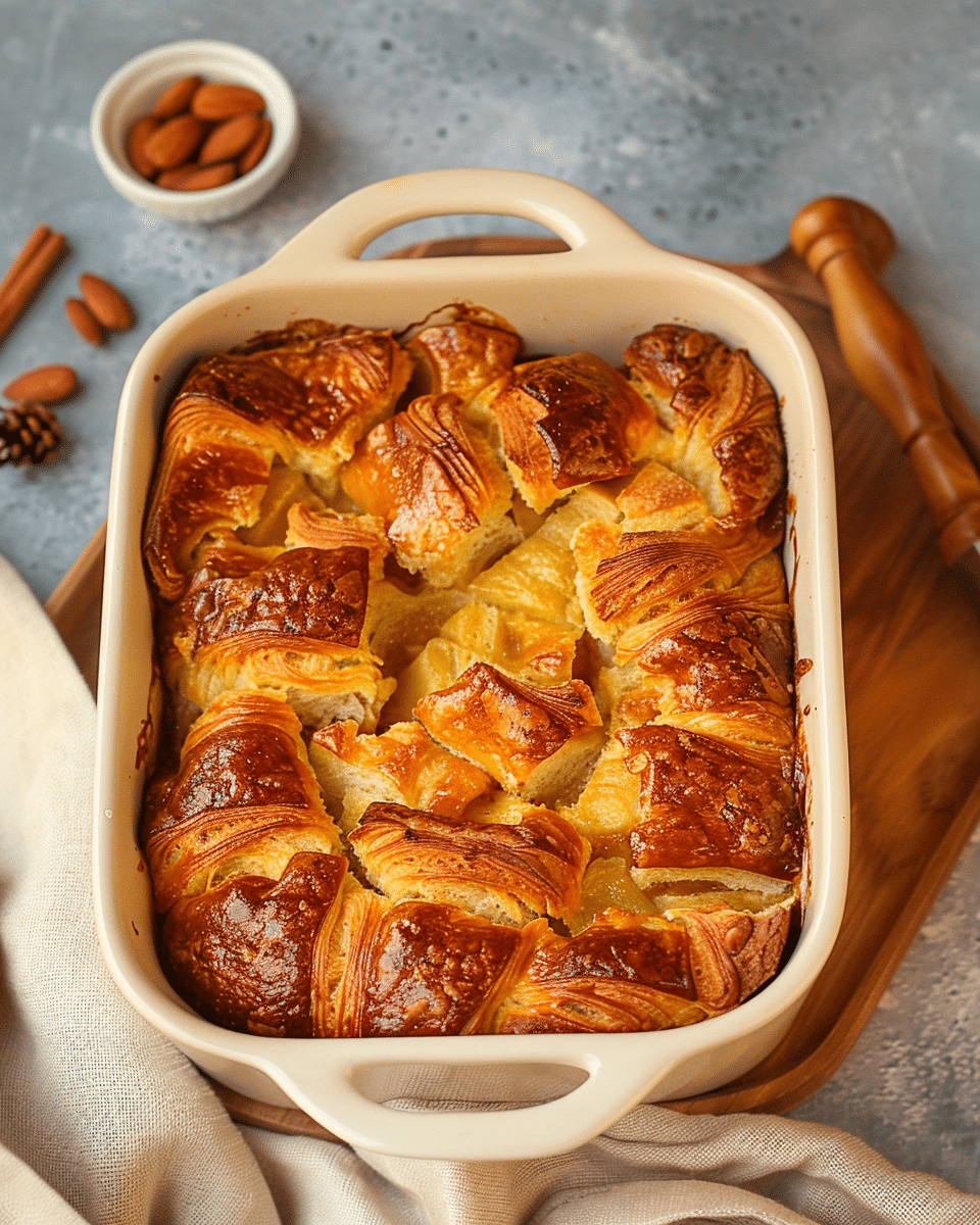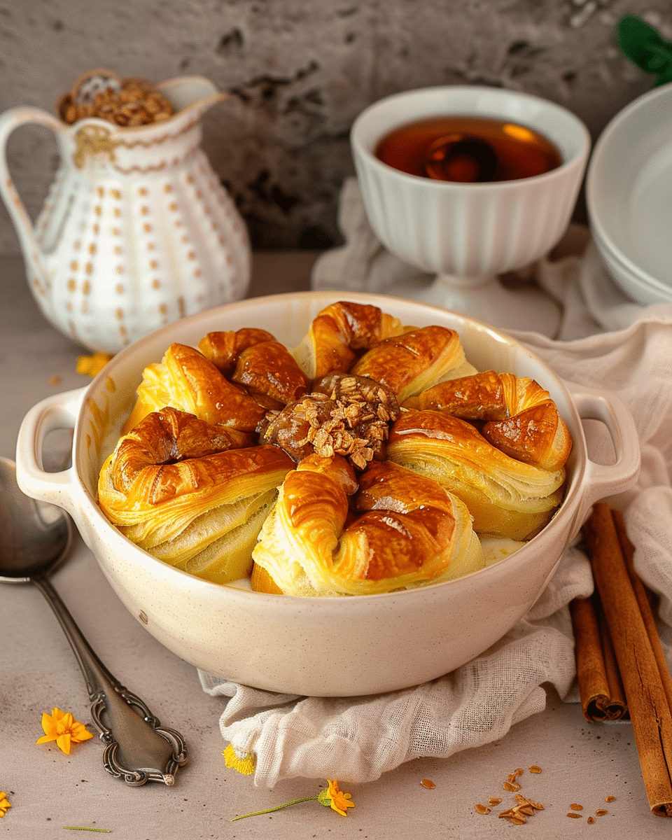 Buttery croissants meet a rich maple custard in this cozy bread pudding—crispy on top, soft inside, and perfect for brunch or dessert.