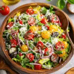 I like to customize this salad depending on my mood. Sometimes I swap salami for grilled chicken or turkey for a lighter option. I also enjoy adding mozzarella pearls or provolone slices for extra richness. For a vegetarian version, I simply leave out the meat and add more vegetables like cucumbers or bell peppers.