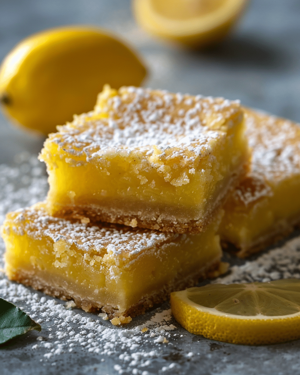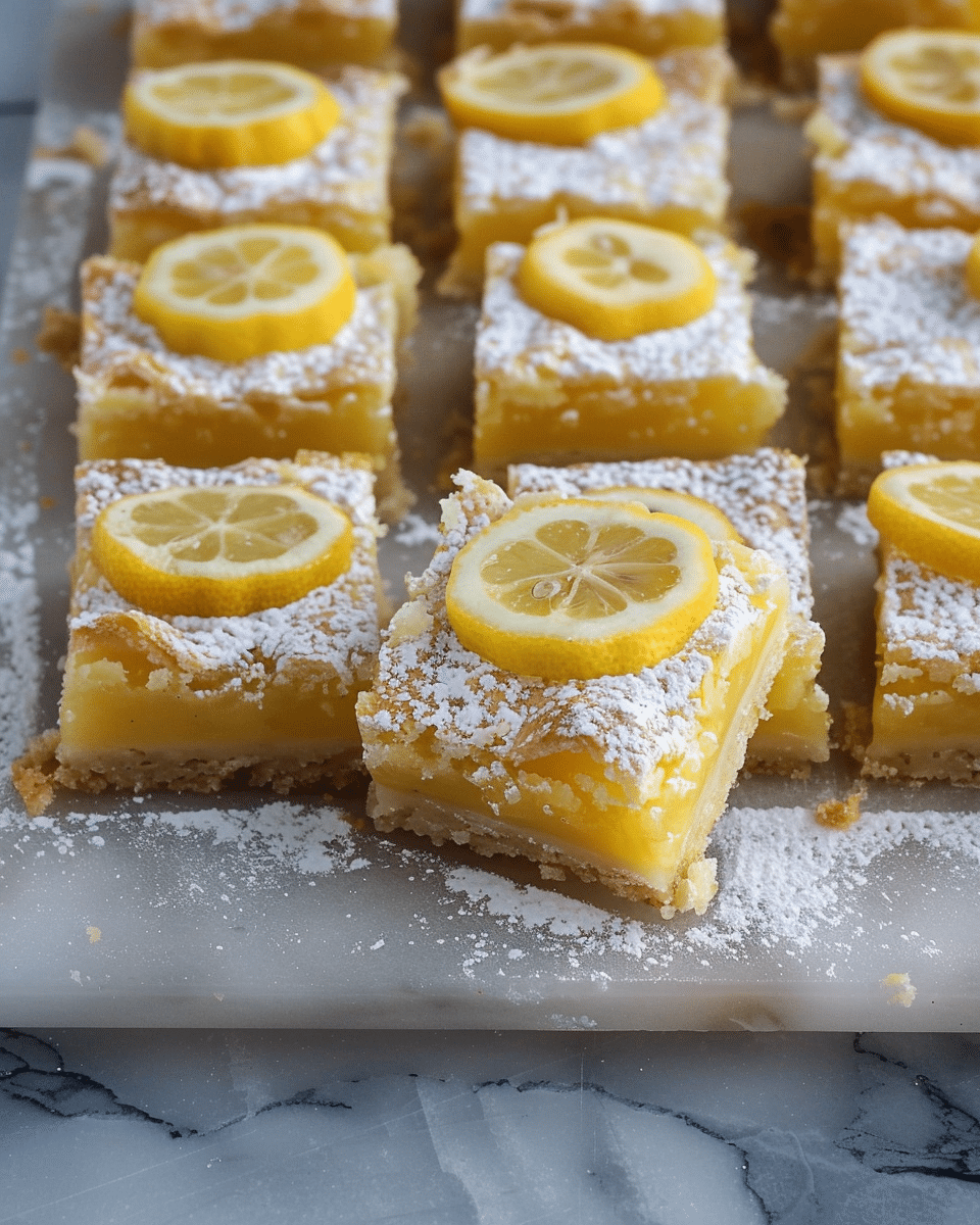Step 5: Cool and Serve I let the bars cool completely in the pan, allowing them to set. Then, I cut them into squares and dust them with powdered sugar right before serving. For a fancy touch, I like to garnish them with paper-thin Meyer lemon wedges.