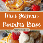 These golden, airy mini German pancakes are baked to perfection with crisp edges and a custardy center—easy to make, no flipping required, and perfect for toppings!