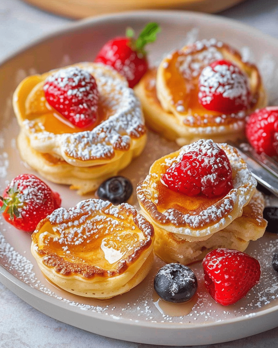 I serve them warm with my favorite toppings — fresh fruit, powdered sugar, maple syrup, or even savory fillings.