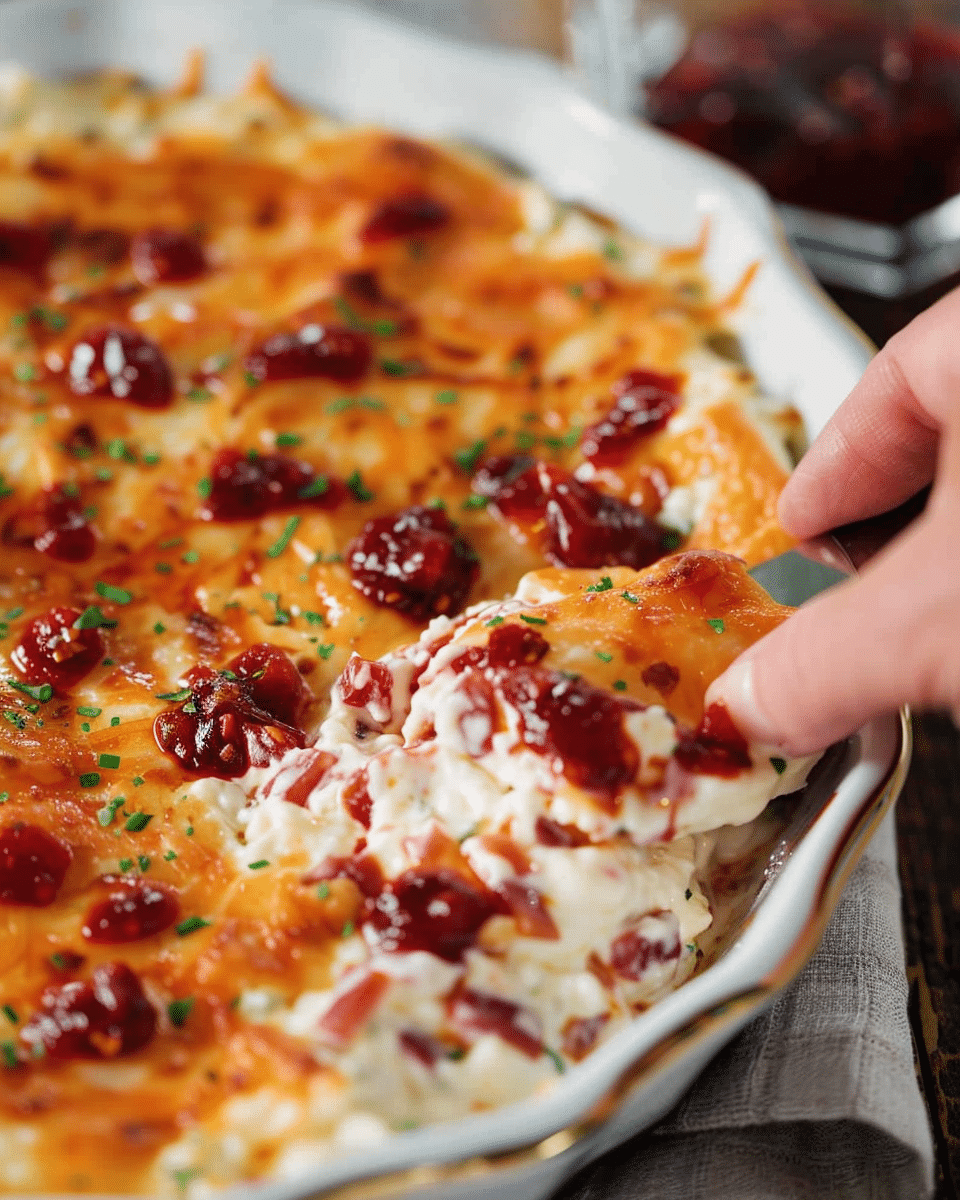 Mom’s Razzle Dazzle Dip is one of those unforgettable recipes that turns heads and wins hearts. The mix of creamy cheese, smoky bacon, spicy jalapeños, and sweet jam is bold and unexpected — but completely addictive. Whether I’m making it for a holiday, game day, or just a fun night in, it’s always the first thing to disappear from the table.