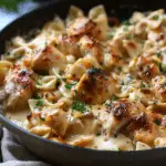 Mozzarella Garlic Butter Chicken Bowties in Cheesy Cream is a rich, comforting dish that combines tender chicken, perfectly cooked pasta, and a decadent garlic cream sauce topped with melted mozzarella. I love how easy it is to make at home and how satisfying every bite is. It’s perfect for weeknight dinners, cozy weekends, or anytime I crave cheesy, garlicky comfort food.