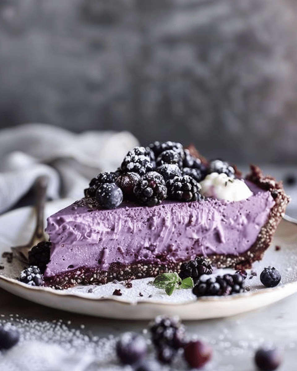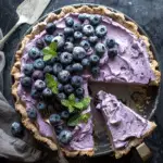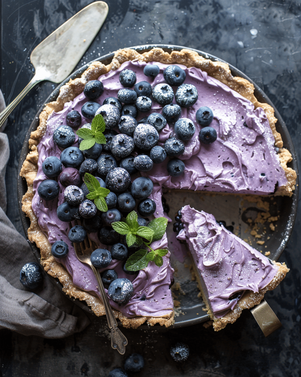 A refreshing No-Bake Blueberry Chia Seed Pie with a buttery crust and creamy blueberry filling, perfect for a healthy and easy dessert.