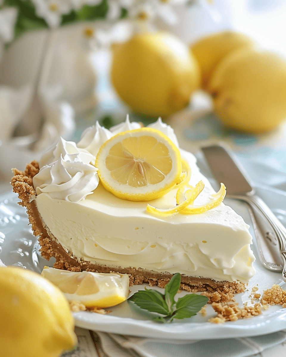 Serve: I serve the pie chilled and occasionally garnish it with lemon slices or a dollop of whipped cream.