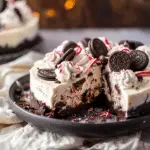 This No Bake Peppermint Oreo Cheesecake is pure holiday joy in dessert form—creamy, chocolatey, minty, and no oven required. I love how festive it looks with the crushed peppermints and whipped cream swirls, and how simple it is to prepare ahead. Whether I’m hosting a holiday gathering or just making something fun for the family, this cheesecake always brings the Christmas magic.