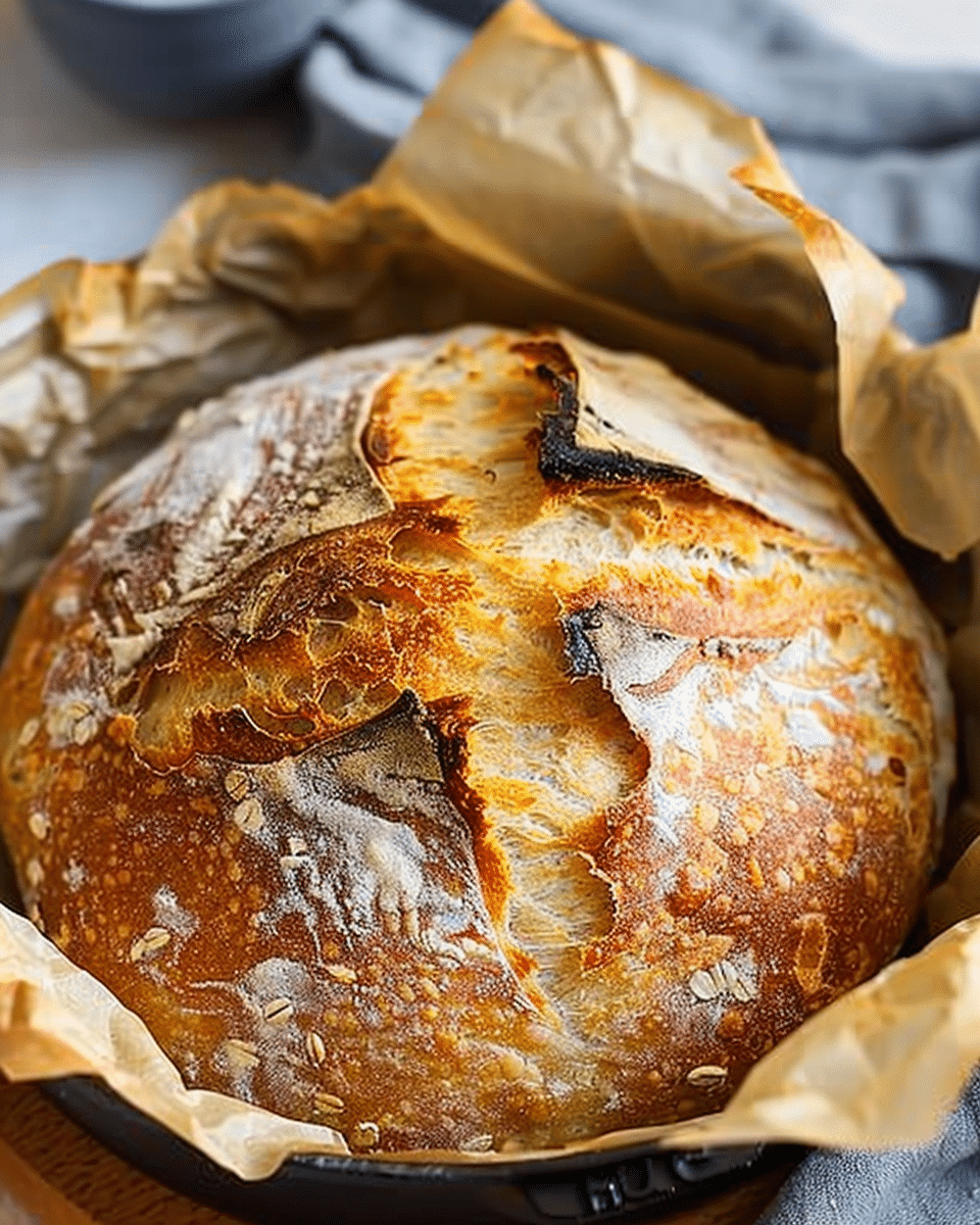 I enjoy this recipe because it requires minimal work and no kneading at all. I simply mix the ingredients, let time do the work, and end up with a rustic loaf that tastes amazing. I also like how flexible the rising time is, allowing me to fit it easily into my schedule.