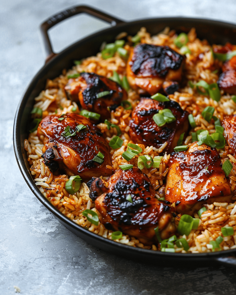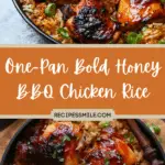 Sticky-sweet honey BBQ chicken cooks right in the same skillet with fluffy rice and tender veggies for an easy, bold, family-friendly dinner—minimal dishes, maximum flavor.