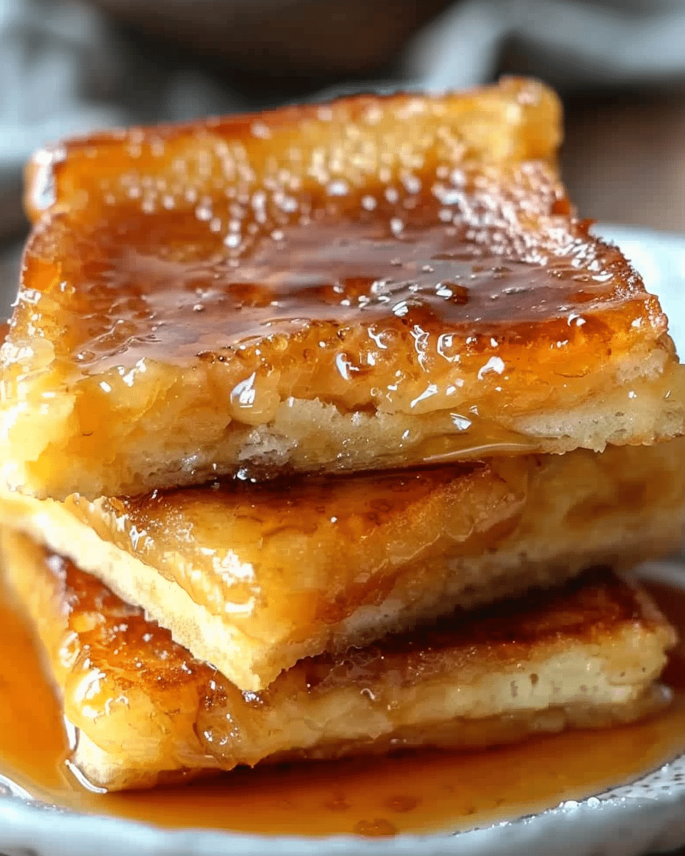 I like how this recipe balances indulgence with convenience. The caramel layer at the bottom transforms into a sticky, golden topping when I flip the slices, giving each bite a crème brûlée-like finish. Preparing it ahead means I can relax in the morning while still serving something special. It’s also versatile—I can dress it up with fruit, spices, or even a brûléed sugar crust for an extra fancy touch.