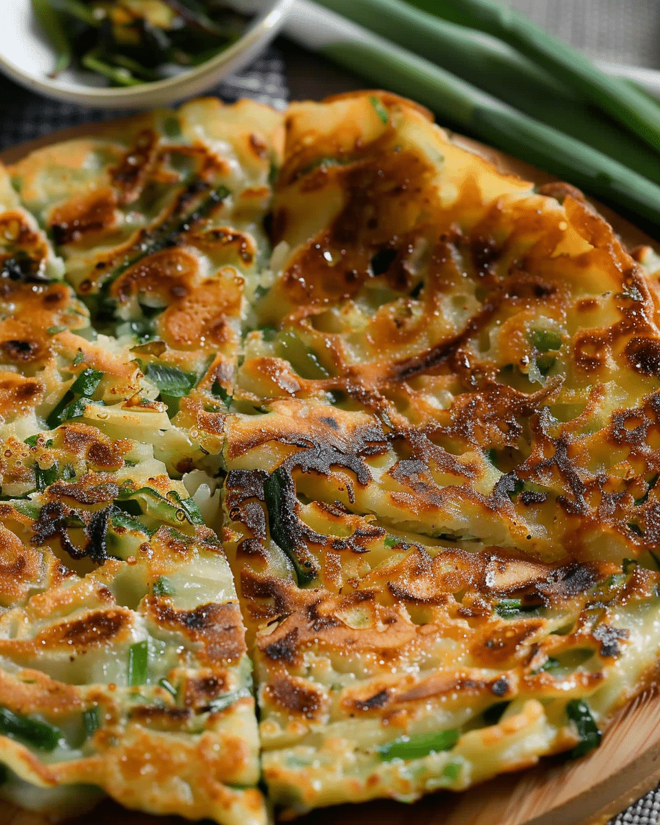Crispy Korean scallion pancake (pajeon) made with green onions, simple batter, and a tangy soy dipping sauce. Perfect as a snack, side, or light meal.
