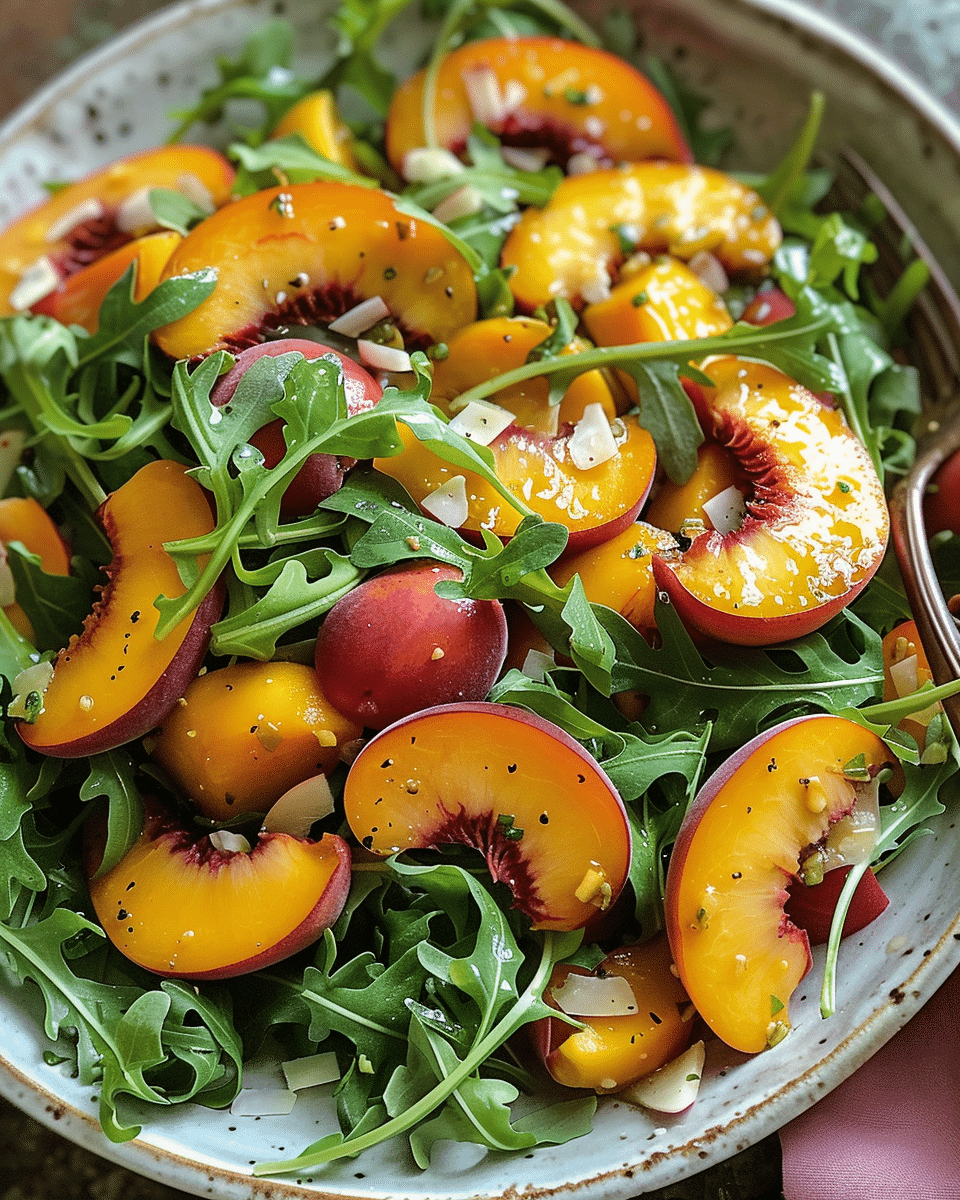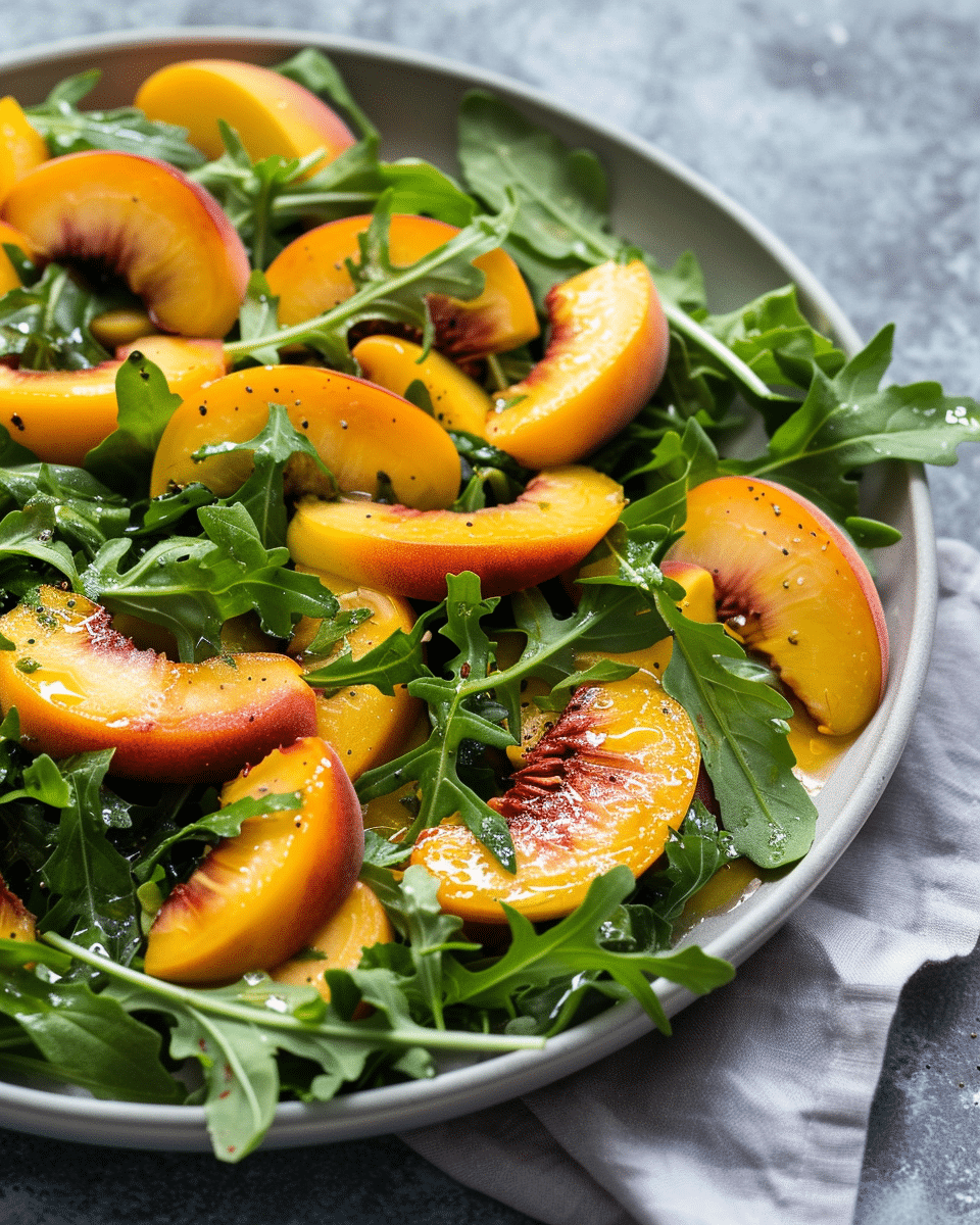 I keep coming back to this peach arugula salad because it’s simple, refreshing, and full of contrasting flavors and textures. It’s a dish I enjoy making whenever I want something light yet satisfying, especially during peach season.
