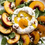 I love this salad because it’s quick to prepare, bursting with color, and full of contrasting textures—sweet, creamy, crisp, and tangy. It feels fancy without being fussy, and I can throw it together in just 10 minutes. The combination of sweet peaches and creamy burrata is always a hit, and I like how easily I can dress it up with toasted nuts or fresh herbs depending on what I have on hand. Whether I’m hosting a summer gathering or just treating myself, this salad always impresses.