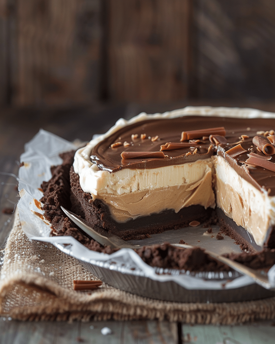 Peanut Butter Twix Pie is a rich no bake dessert with a buttery shortbread crust, creamy peanut butter filling, and silky chocolate ganache topping that sets into perfect sliceable layers.