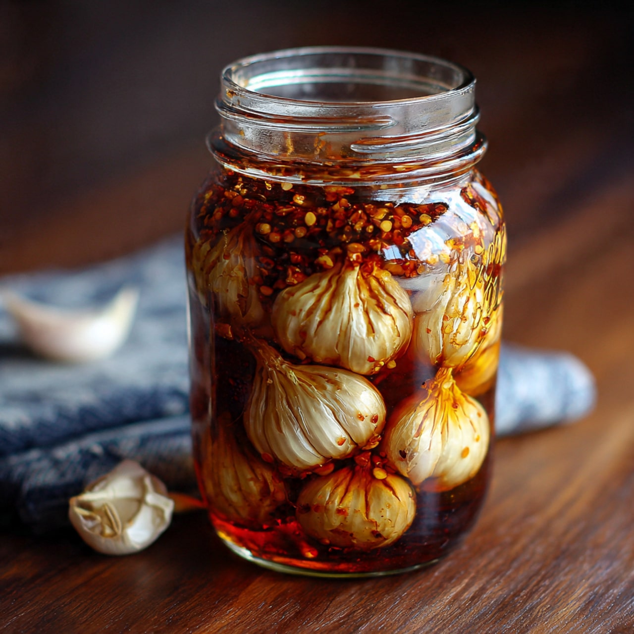 Combine and Seal: I pour the mixture over the garlic until it’s completely submerged, then seal the jar tightly.