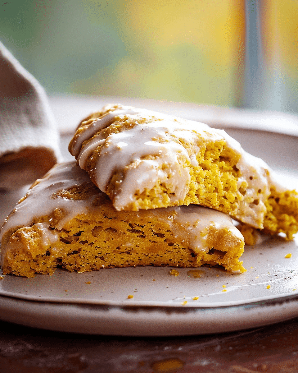 Start your fall mornings right with these tender pumpkin scones topped with a cozy pumpkin glaze. Perfect with coffee and full of warm spices and seasonal flavor.