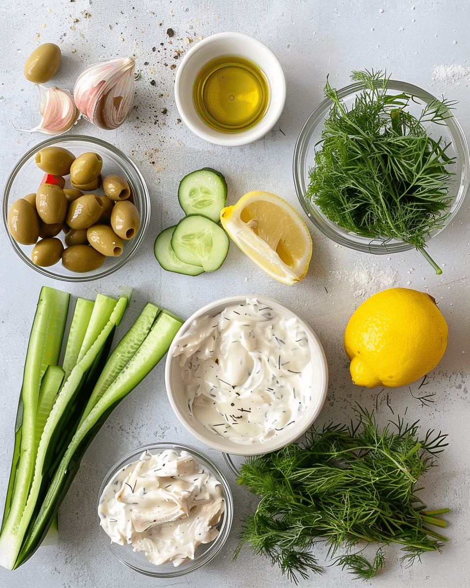 I love this tuna salad because it’s creamy without the heaviness of mayo, and it’s filled with bright Mediterranean flavors that keep things light and refreshing. The chopped cucumbers, tomatoes, and olives give it great texture, while parsley and dill add fresh, herby goodness. It’s perfect on its own, in a wrap, or served with crackers — and it keeps well for quick lunches throughout the week.