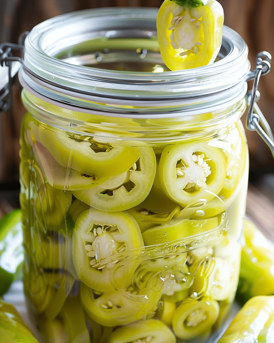 These crisp, tangy banana peppers are ready fast with a simple vinegar brine. Great for topping sandwiches, salads, pizza, or enjoying straight from the fridge.