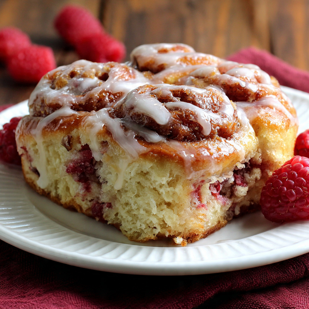 Soft brioche rolls swirled with a sweet-tart raspberry filling and topped with luscious raspberry cream cheese frosting—perfect for brunch or dessert.