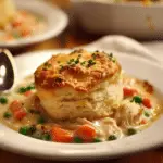 I love this recipe because it combines two comforting classics: chicken pot pie and cheesy garlic biscuits. The creamy filling pairs beautifully with the fluffy biscuit topping, creating a dish that is both rich and satisfying. I also appreciate how simple the preparation is, especially when I use rotisserie chicken to save time. The biscuit topping bakes into a golden, flavorful crust that soaks up the savory filling underneath, making every bite incredibly comforting.